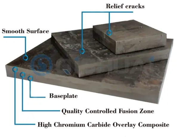 | Şiddetli malzeme aşınması ve hızlı aşınma | 1. Aşınmaya dayanıklı katman sertliği (HRC)2. Karbür tipi ve dağılımı | 1. Yüksek sertlikte alaşım katmanı (HRC 60+)2. Yoğun ve düzgün aşınmaya dayanıklı yapı | Kesme, kaynaklama, cıvata sabitleme |